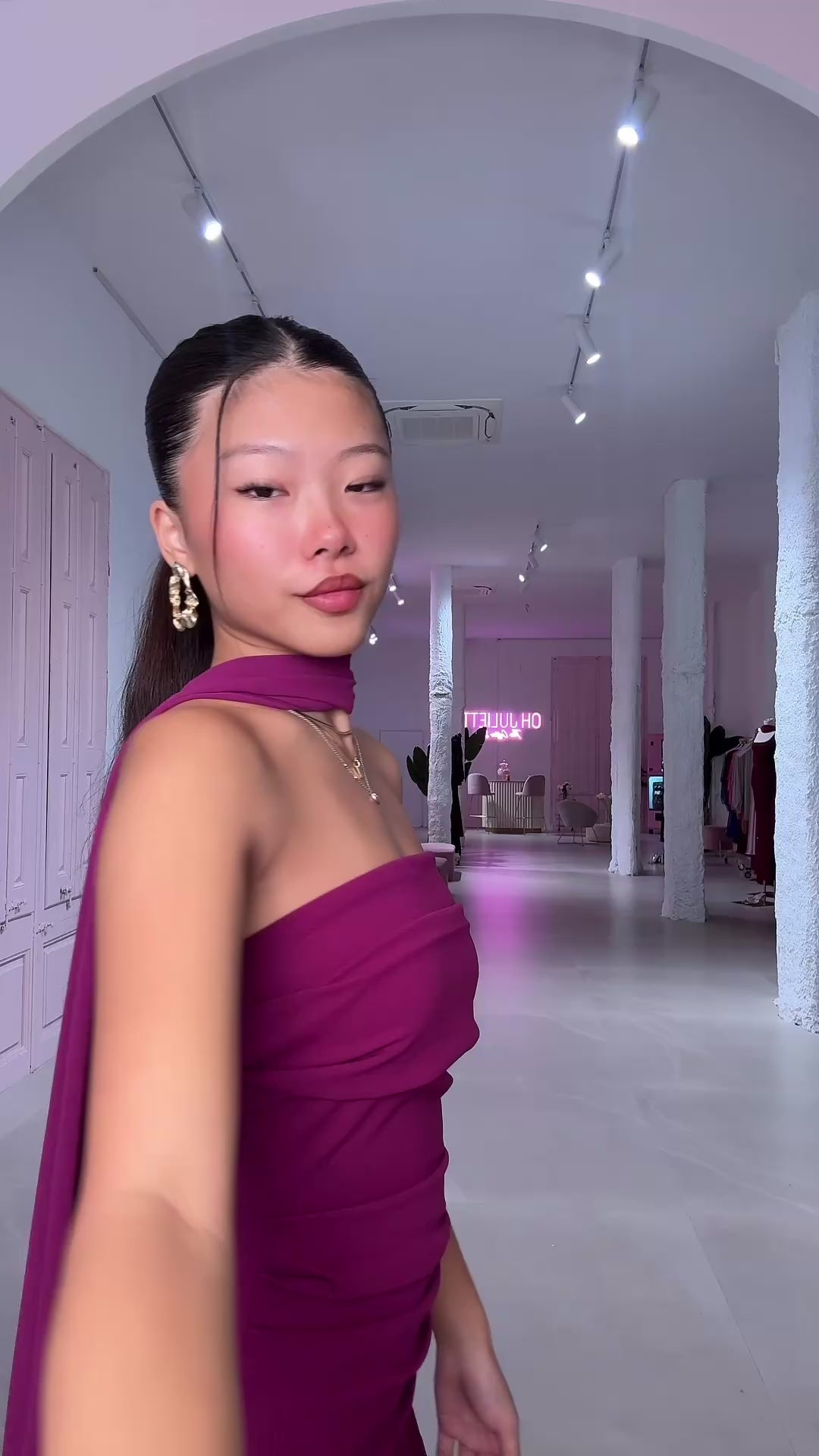La mayoría de prendas son talla única y abarcan aproximadamente desde la talla 34 hasta la 38 ya que el tejido es elástico. La modelo tiene una talla 34 y mide 1,70cm.